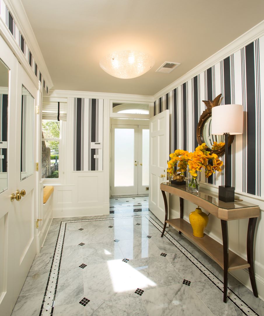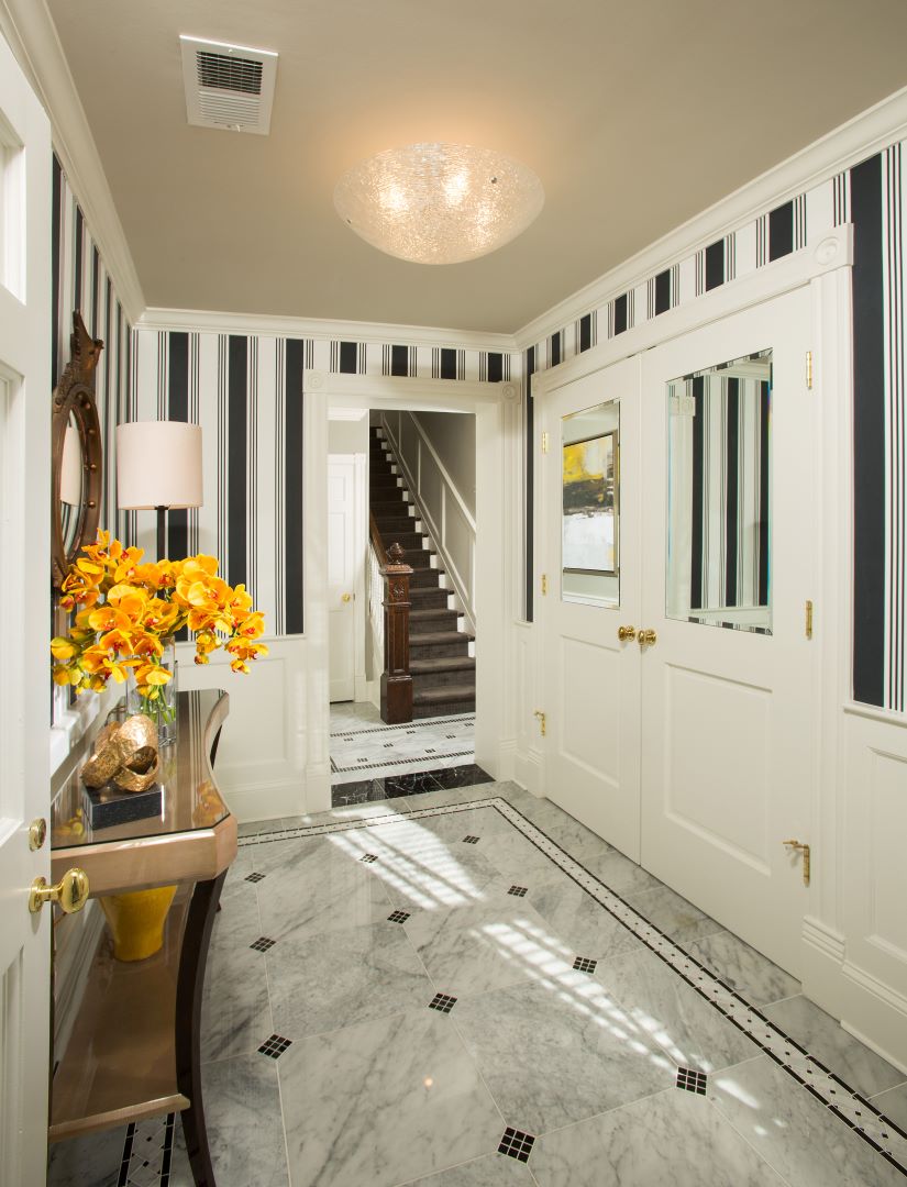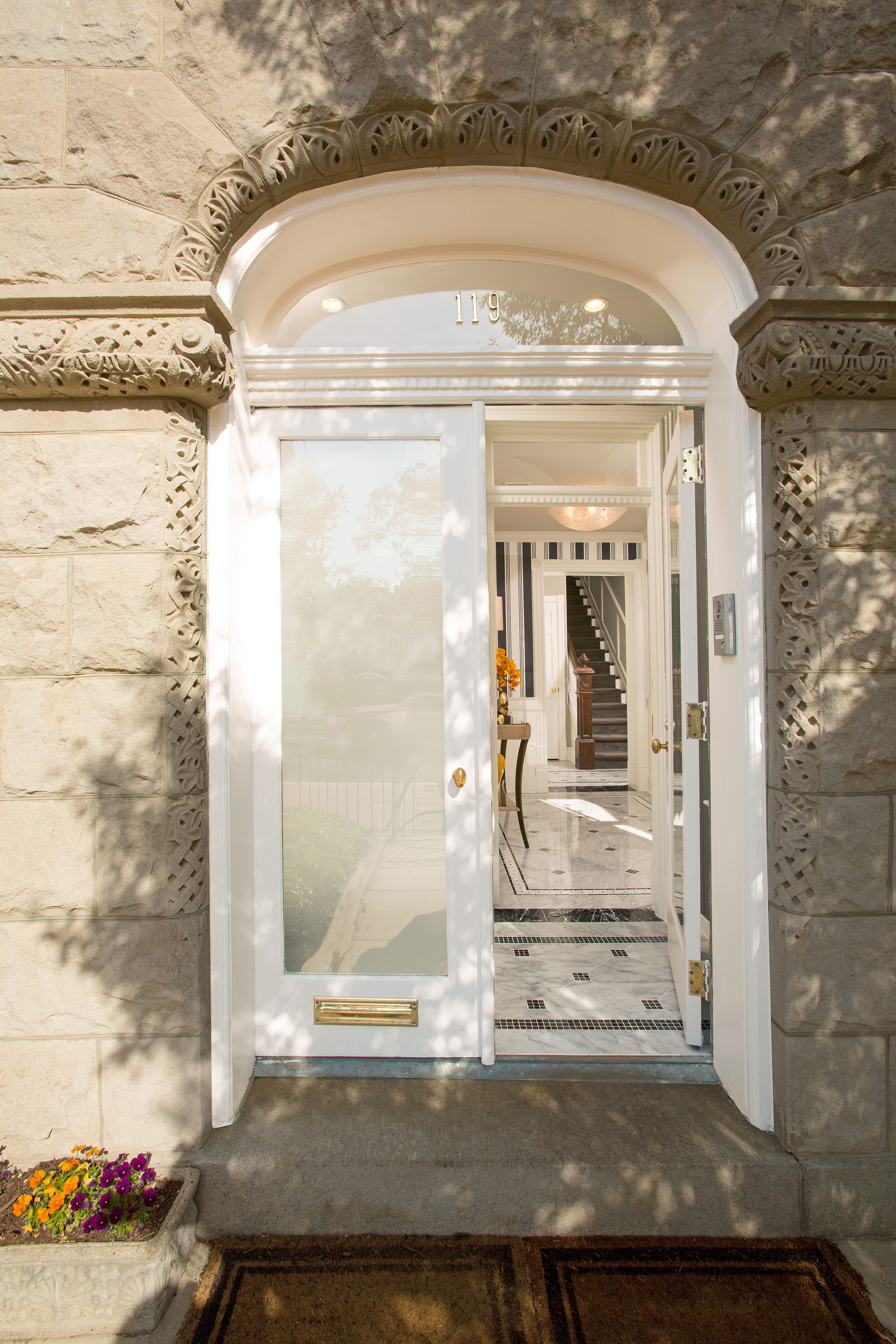 The renovation included all the rooms on all 4 stories. We worked with the clients for several months on the design, including selections for the kitchen and 3.5 bathrooms. We referred them to an interior designer that they worked with on paint colors, wallpaper, furnishings, and window treatments. We refinished all the wood floors, stair railings, and balusters and installed trim and molding in keeping with historic details. The living room has new recessed lights and new light fixtures.