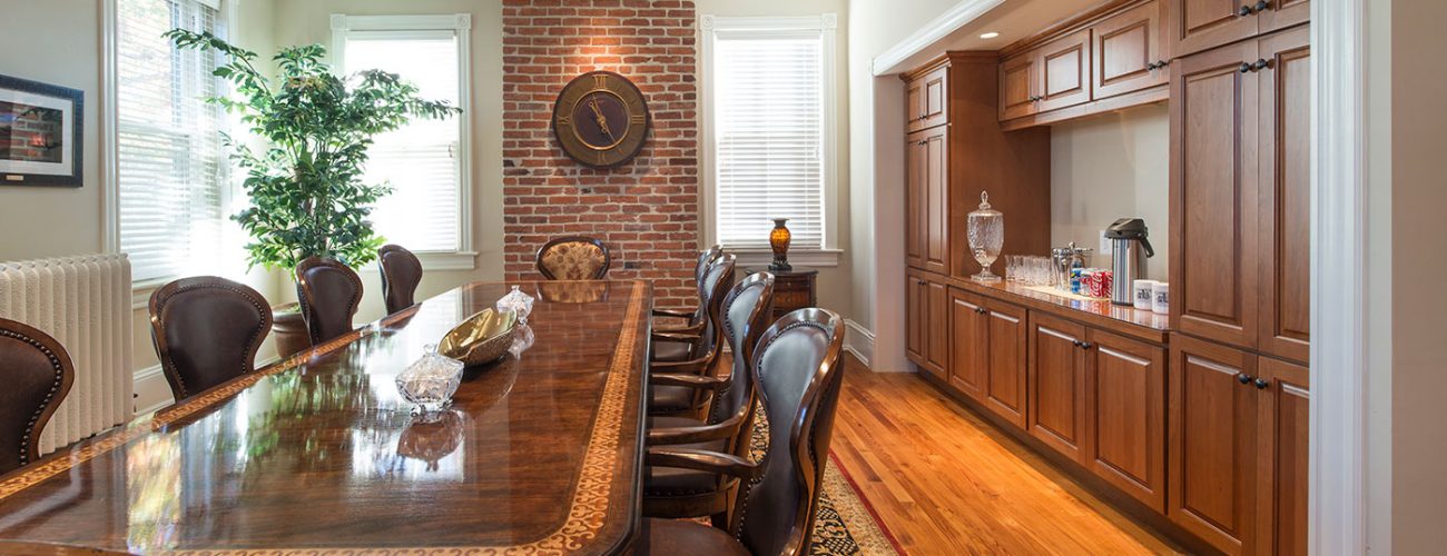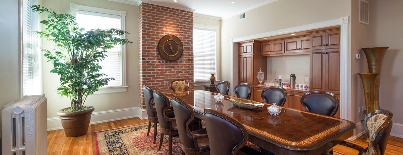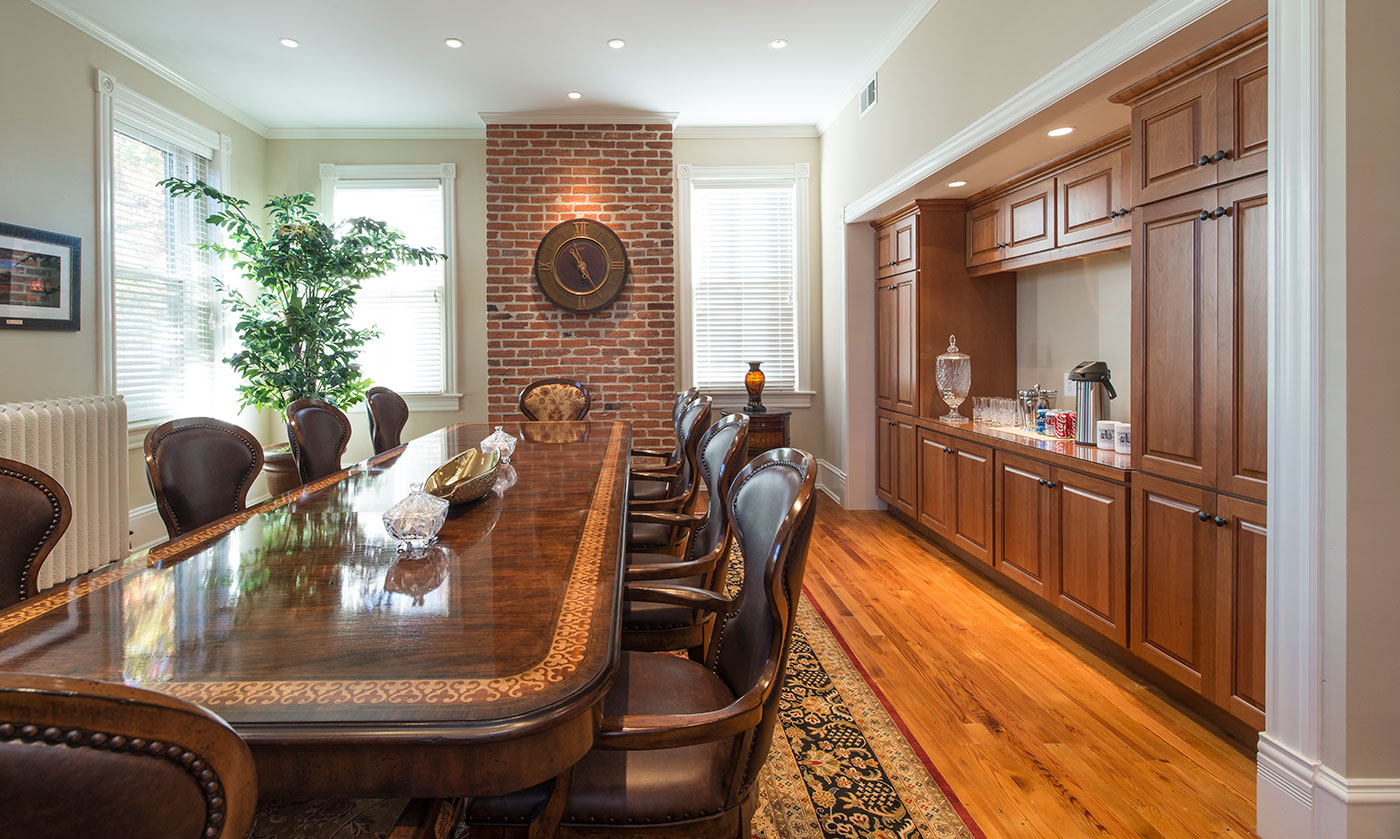 We completed the project in two phases. In the first phase, we reconfigured the 2nd floor of this row house to create a formal conference room. We also demolished an adjacent large full bath to create two powder rooms. This segment was completed in November 2014.
